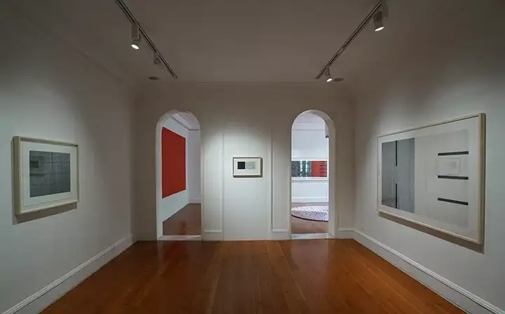 位于376号老洋房内的展厅。结合空间的特质的布展,木地板、拱形墙等洋房的特质营造出独特的艺术特质。